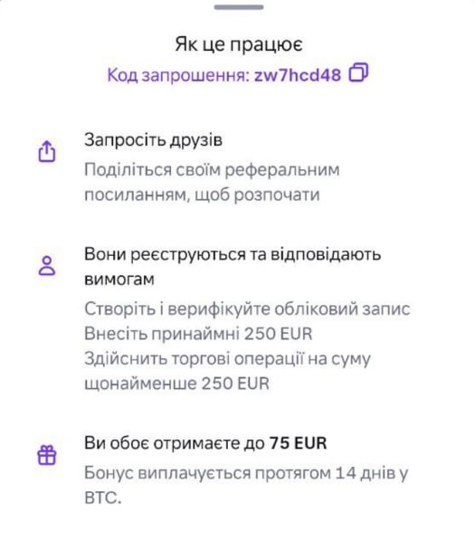 Через 7–14 днів після виконання умов ви отримаєте до 75 євро у біткоїнах на спотовий рахунок Kraken.