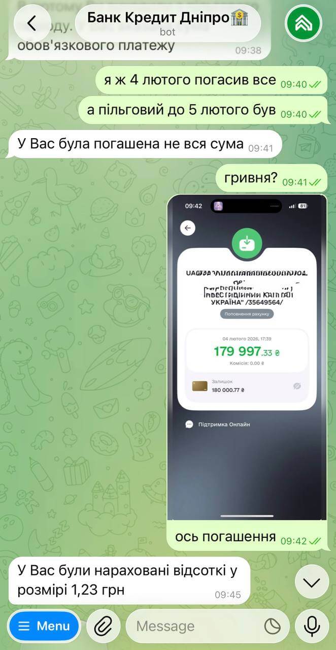 Клієнт здійснив оплату товарів на суму 179 997 грн, використовуючи кредитний ліміт. План був стандартний: закрити заборгованість у межах пільгового періоду та уникнути відсотків.