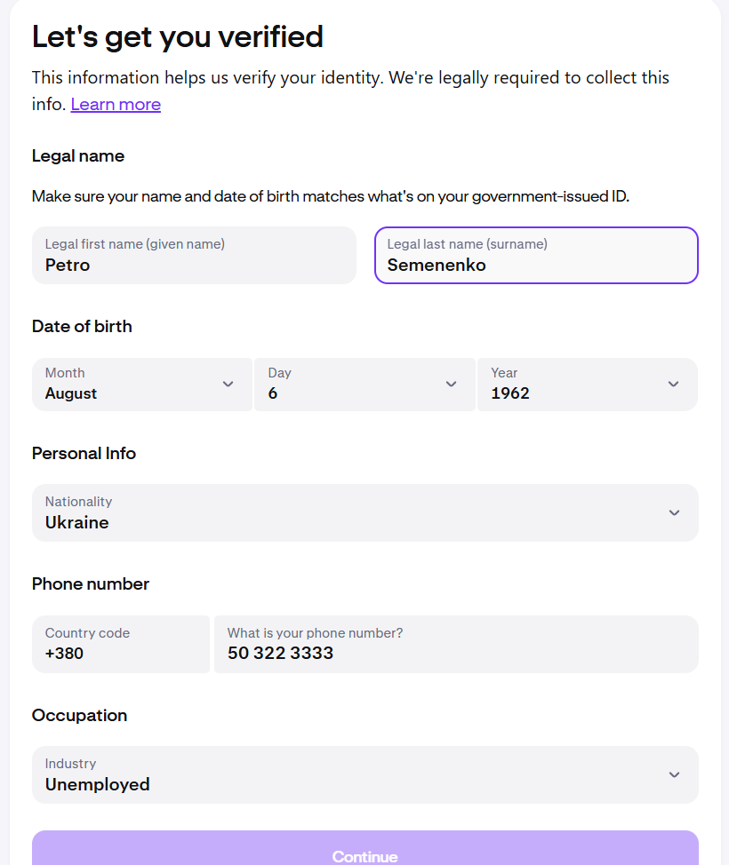 Заповніть особисту інформацію. Український номер телефону підходить без проблем.
