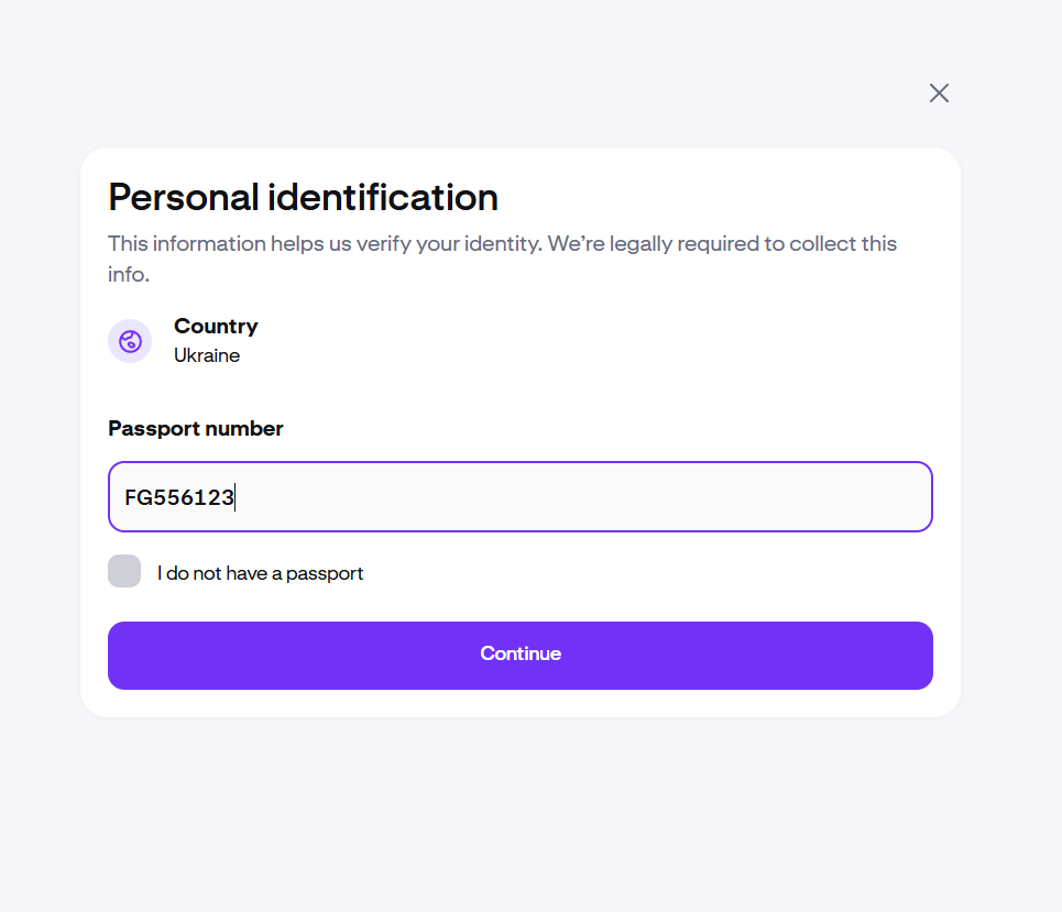 5. Вказуємо номер вашого закородонного українського паспорта або id картки