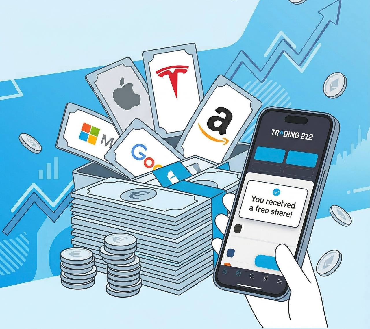 Інвестиційна платформа Trading 212 проводить вигідну акцію для нових користувачів. Ви можете отримати подарункові акції відомих компаній вартістю до 100€, просто відкривши рахунок та поповнивши його на символічну суму в 1 євро.
